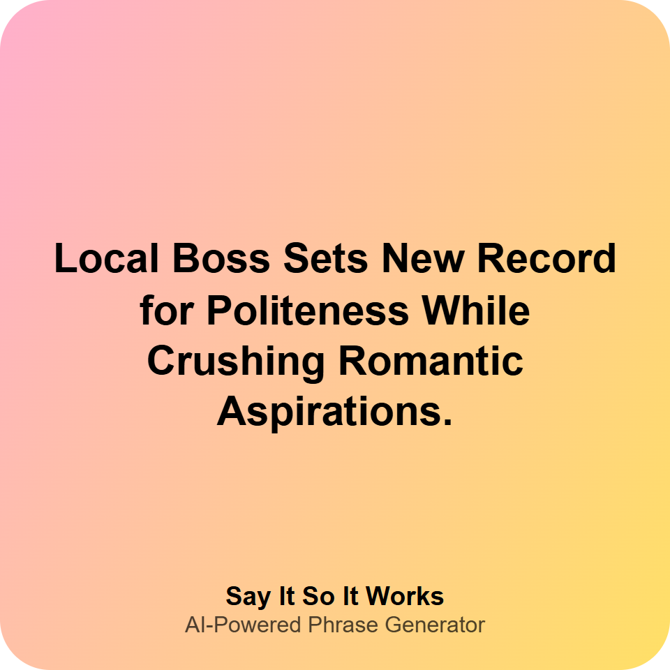 Local Boss Sets New Record for Politeness While Crushing Romantic Aspirations.