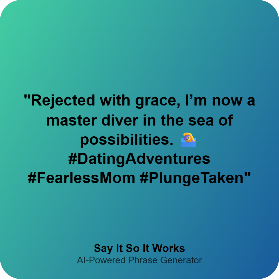 "Rejected with grace, I’m now a master diver in the sea of possibilities. 🏊♀️ #DatingAdventures #FearlessMom #PlungeTaken"