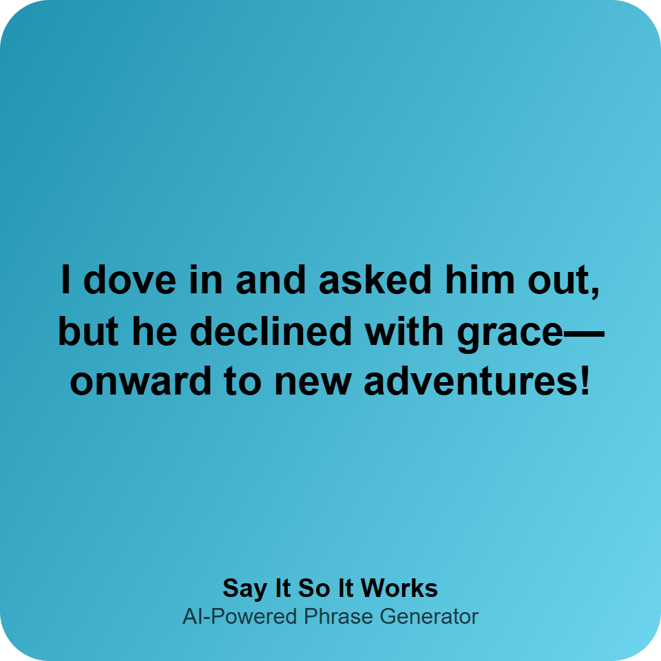 I dove in and asked him out, but he declined with grace—onward to new adventures!