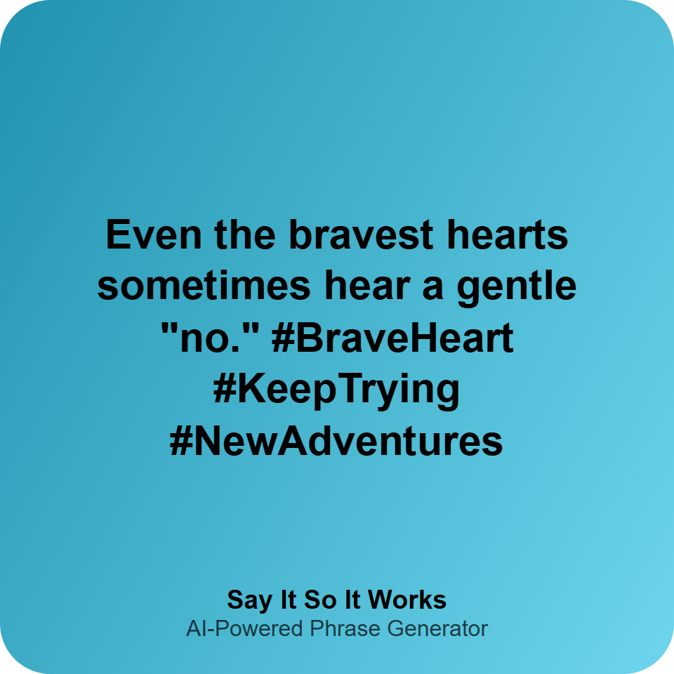 Even the bravest hearts sometimes hear a gentle "no." #BraveHeart #KeepTrying #NewAdventures