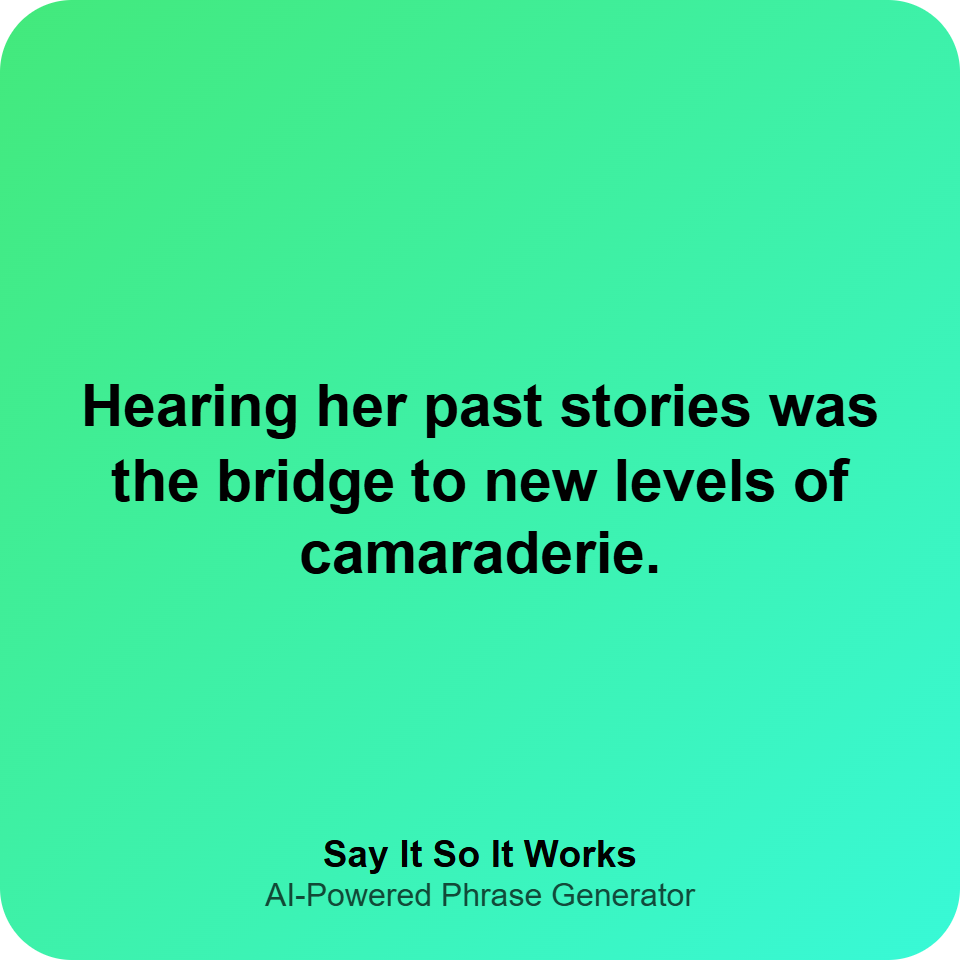 Hearing her past stories was the bridge to new levels of camaraderie.