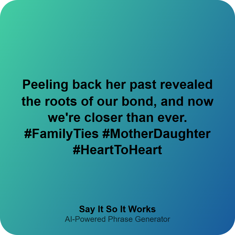 Peeling back her past revealed the roots of our bond, and now we're closer than ever. #FamilyTies #MotherDaughter #HeartToHeart