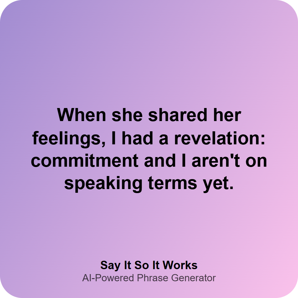 When she shared her feelings, I had a revelation: commitment and I aren't on speaking terms yet.