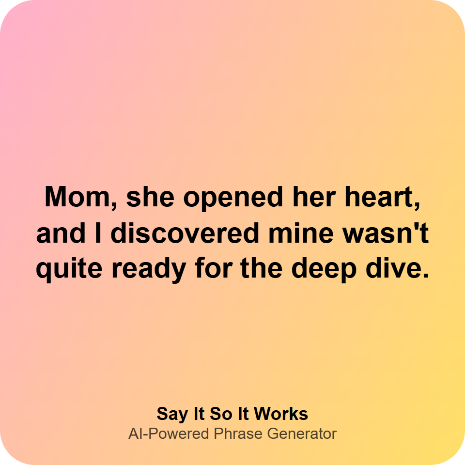 Mom, she opened her heart, and I discovered mine wasn't quite ready for the deep dive.