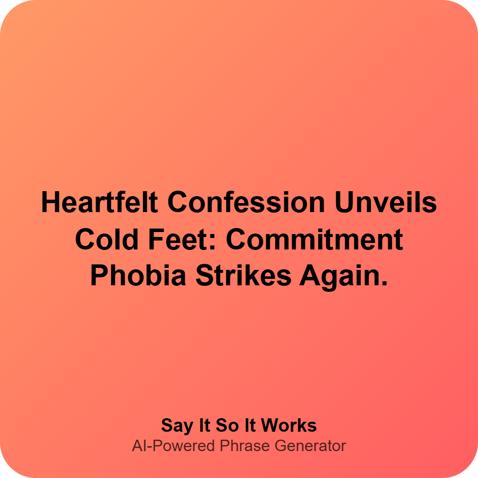 Heartfelt Confession Unveils Cold Feet: Commitment Phobia Strikes Again.