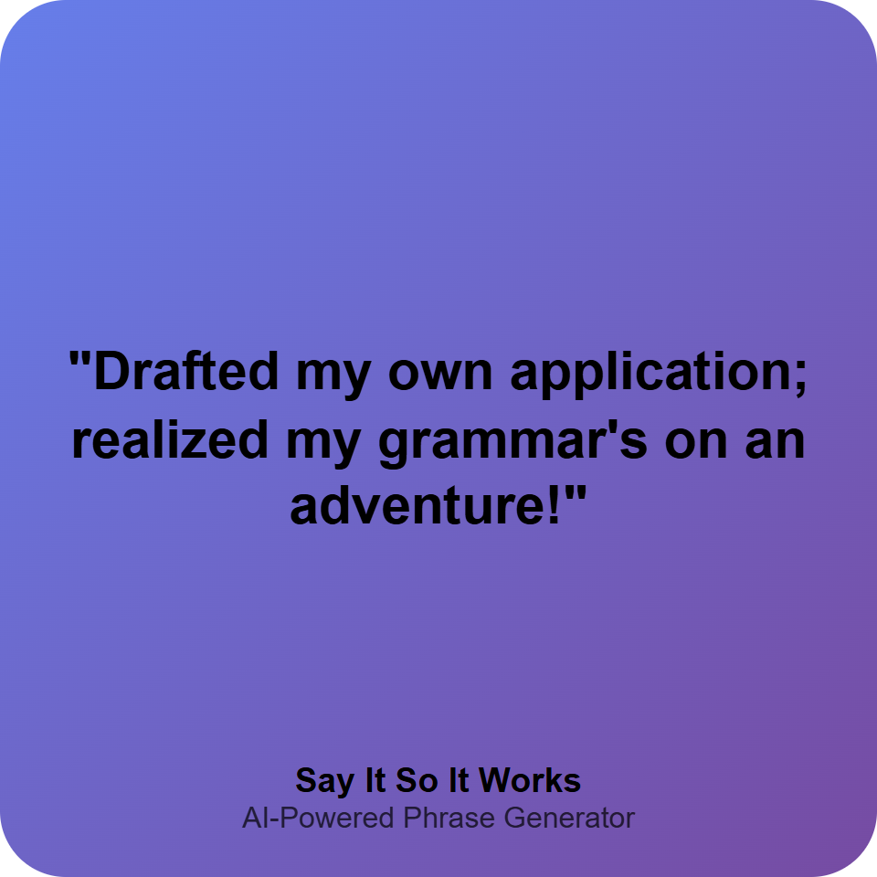 "Drafted my own application; realized my grammar's on an adventure!"