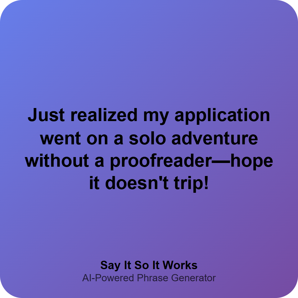 Just realized my application went on a solo adventure without a proofreader—hope it doesn't trip!