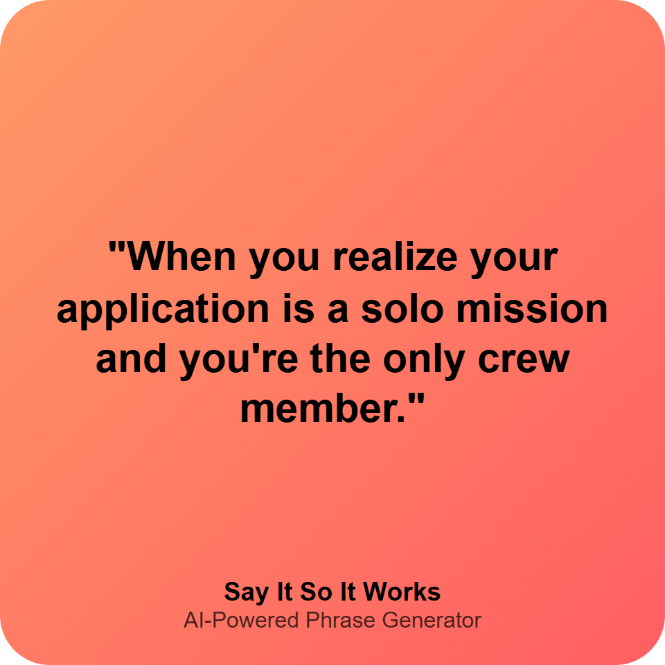 "When you realize your application is a solo mission and you're the only crew member."