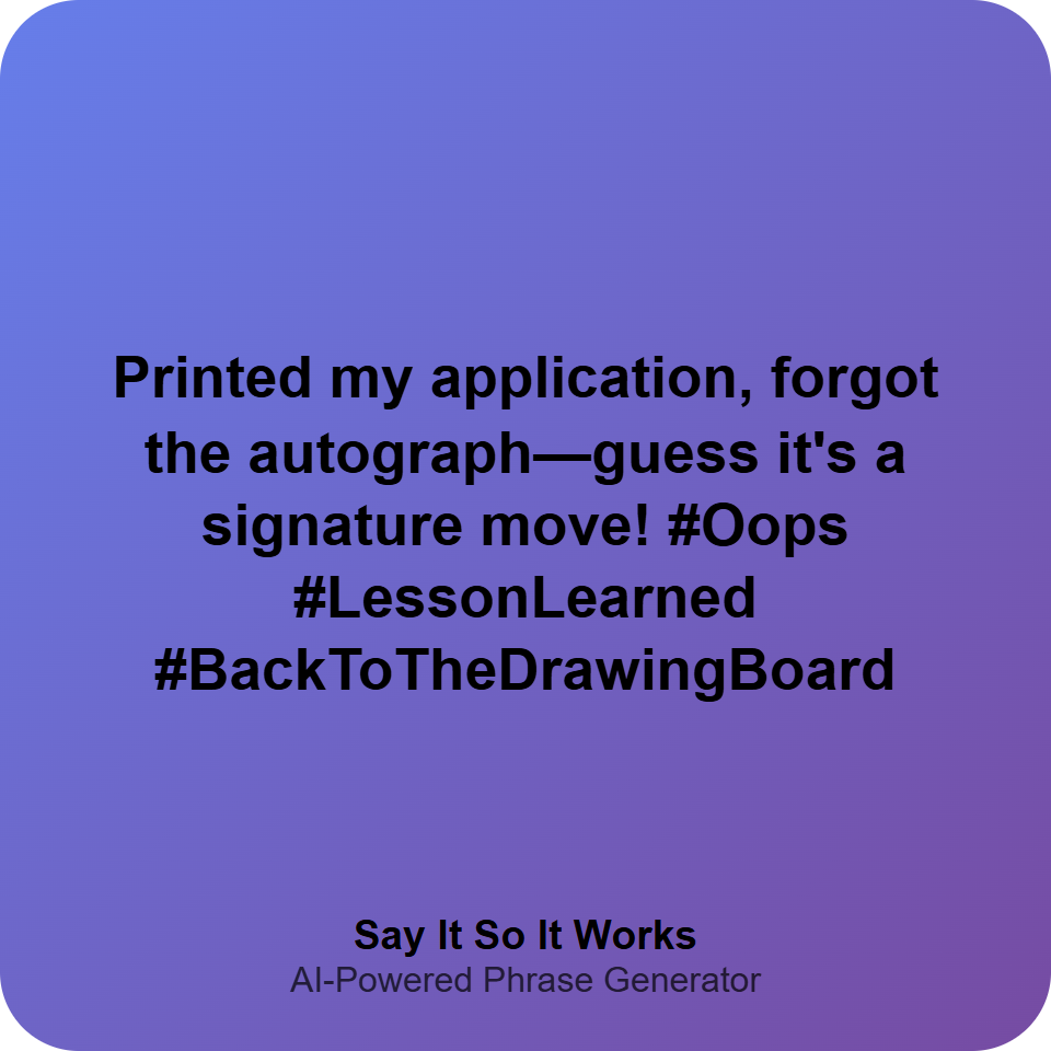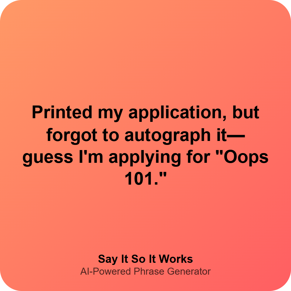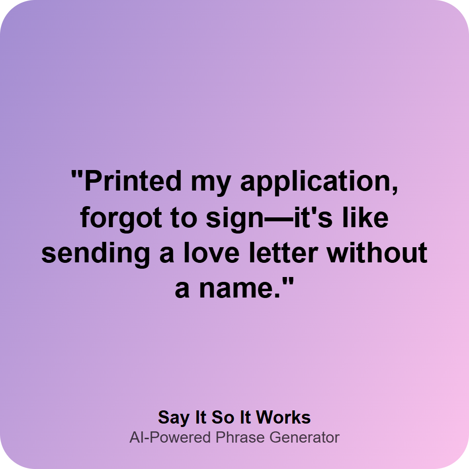 "Printed my application, forgot to sign—it's like sending a love letter without a name."
