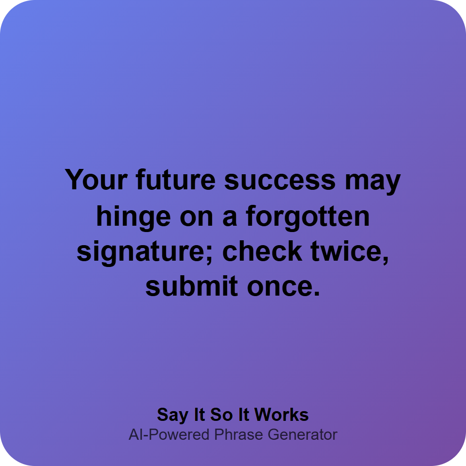 Your future success may hinge on a forgotten signature; check twice, submit once.