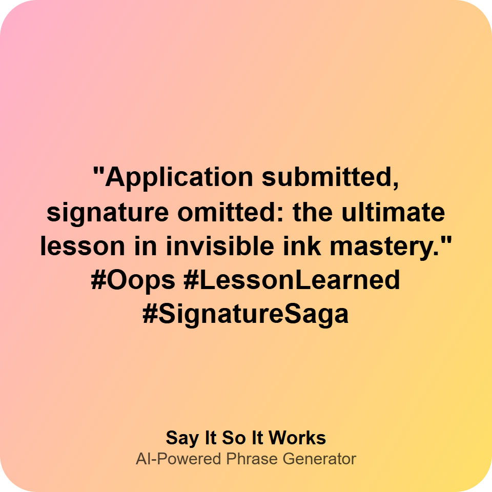 "Application submitted, signature omitted: the ultimate lesson in invisible ink mastery." #Oops #LessonLearned #SignatureSaga