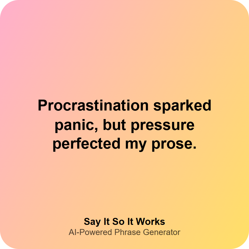 "Started my college essay a week before the deadline: a thrilling tale of panic and caffeine."