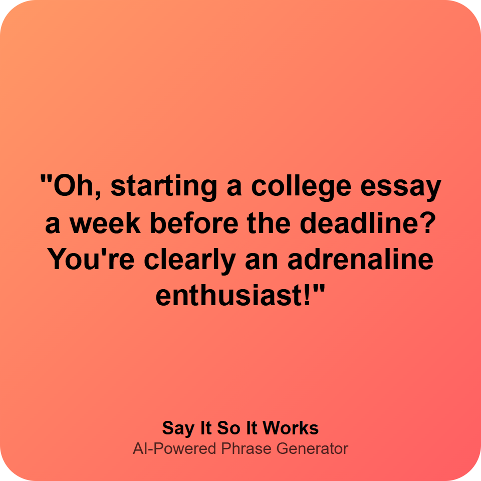 "Oh, starting a college essay a week before the deadline? You're clearly an adrenaline enthusiast!"