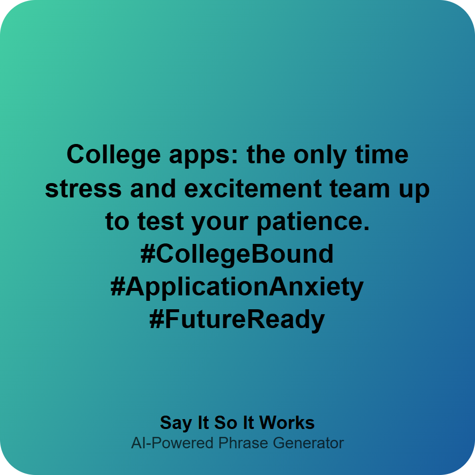 College apps: the only time stress and excitement team up to test your patience. #CollegeBound #ApplicationAnxiety #FutureReady