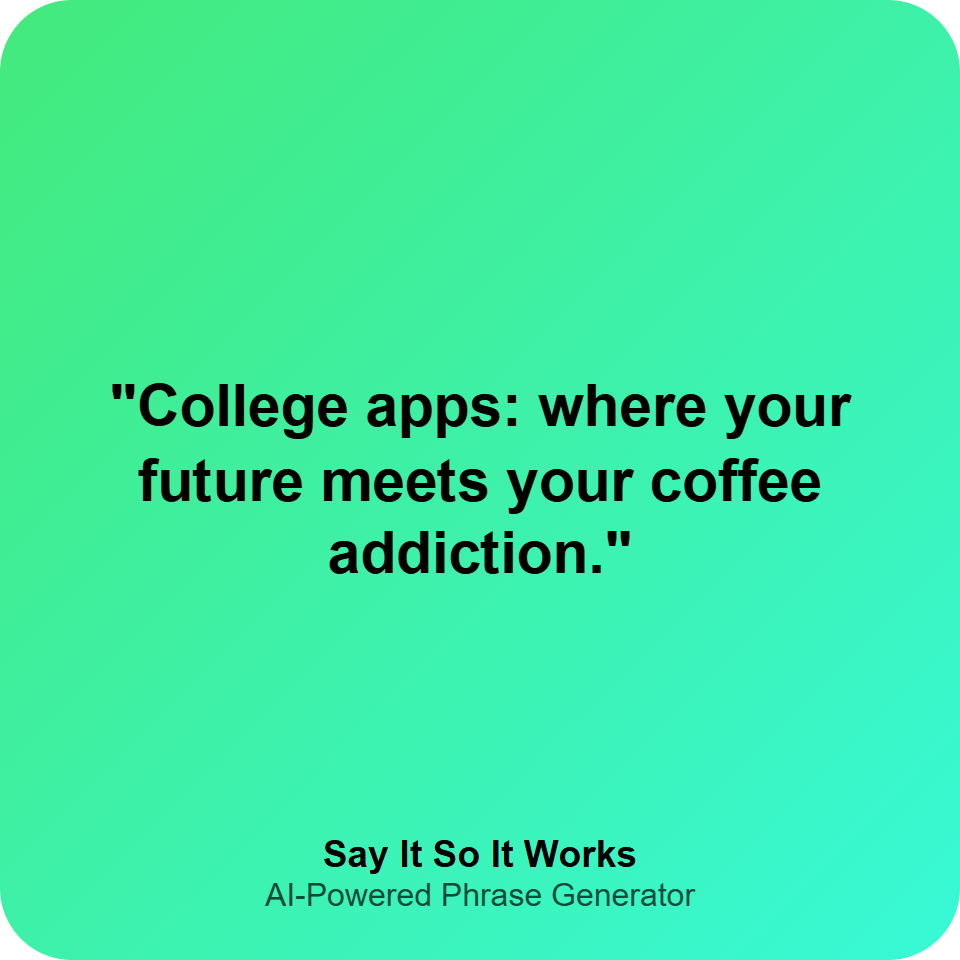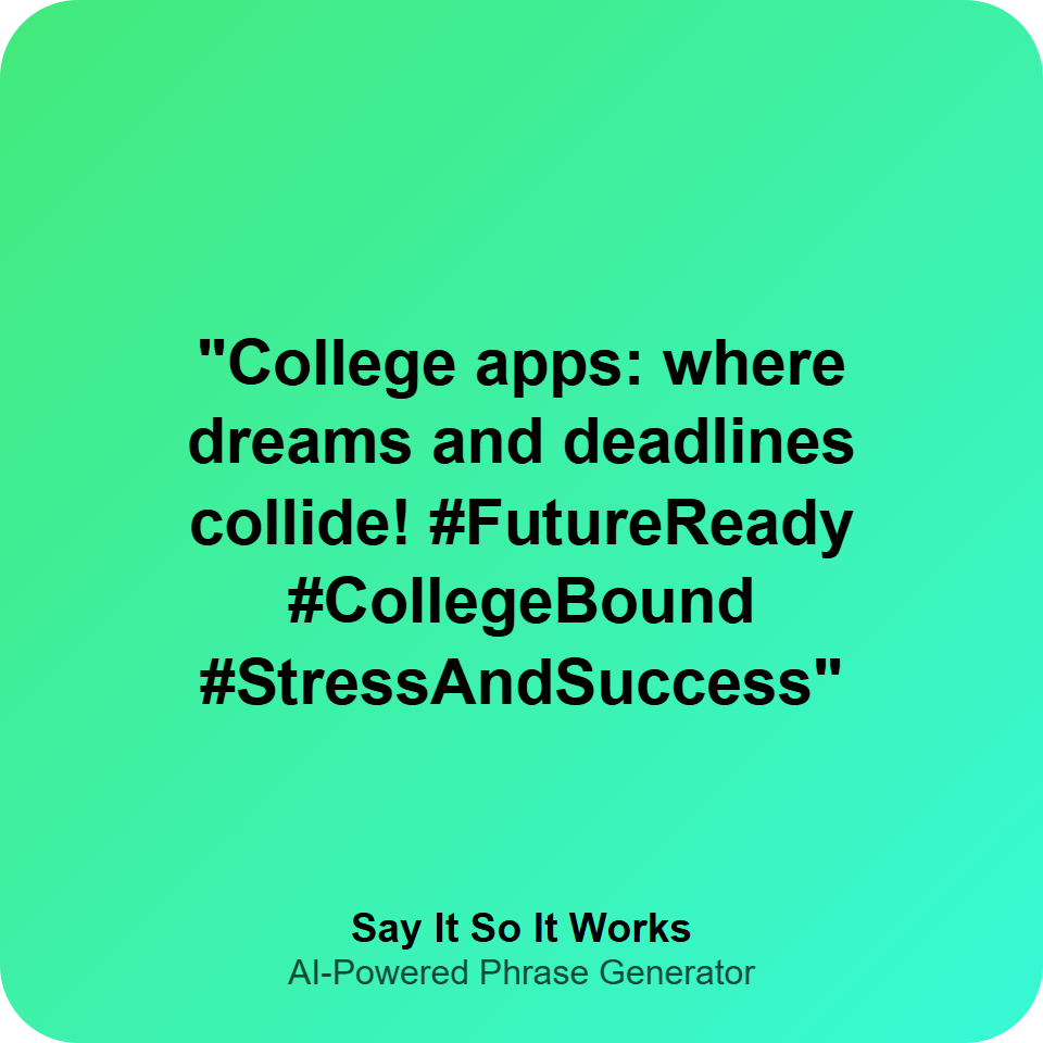 "College apps: where dreams and deadlines collide! #FutureReady #CollegeBound #StressAndSuccess"