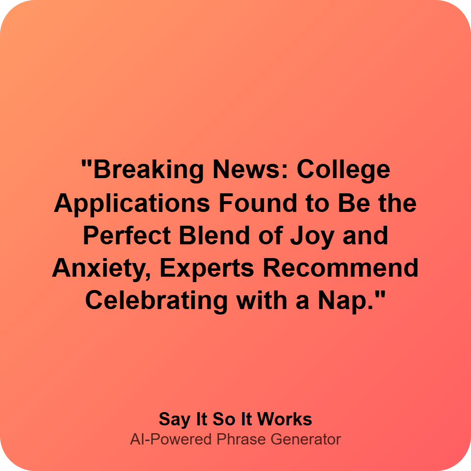 "Breaking News: College Applications Found to Be the Perfect Blend of Joy and Anxiety, Experts Recommend Celebrating with a Nap."