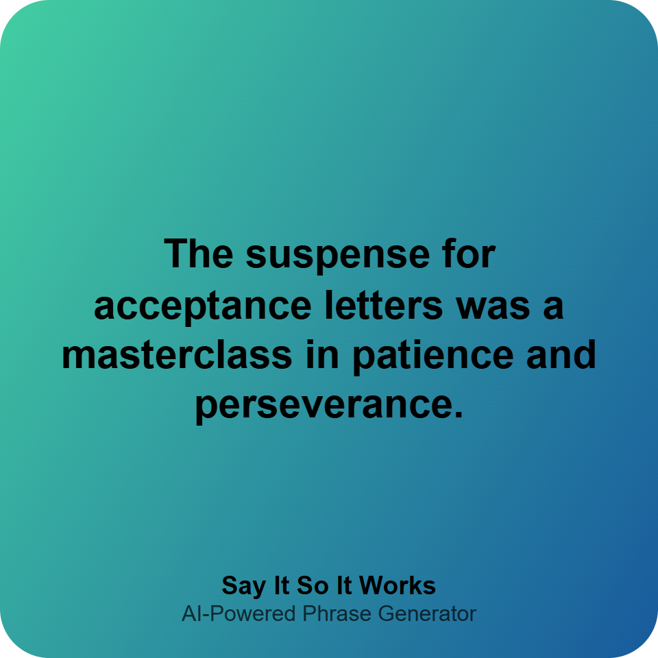 The suspense for acceptance letters was a masterclass in patience and perseverance.
