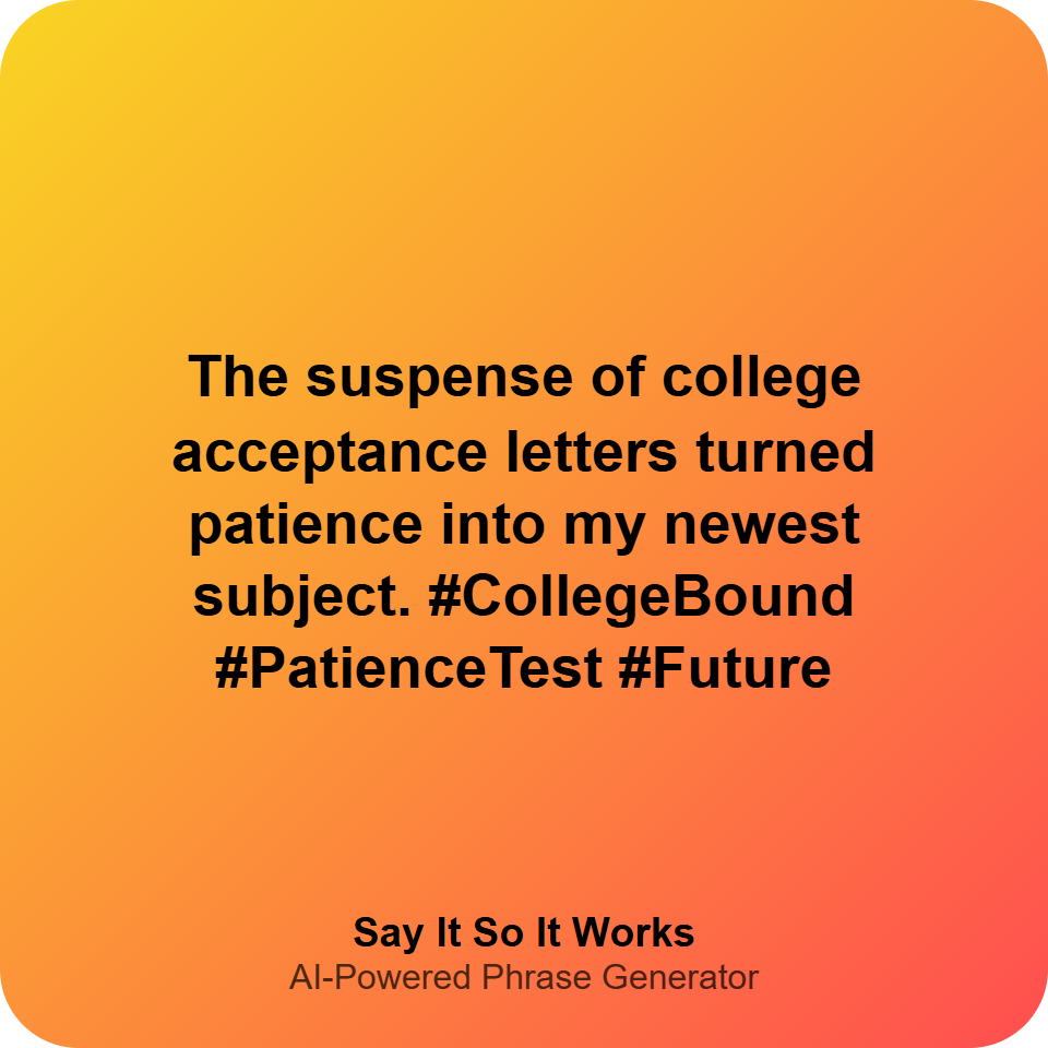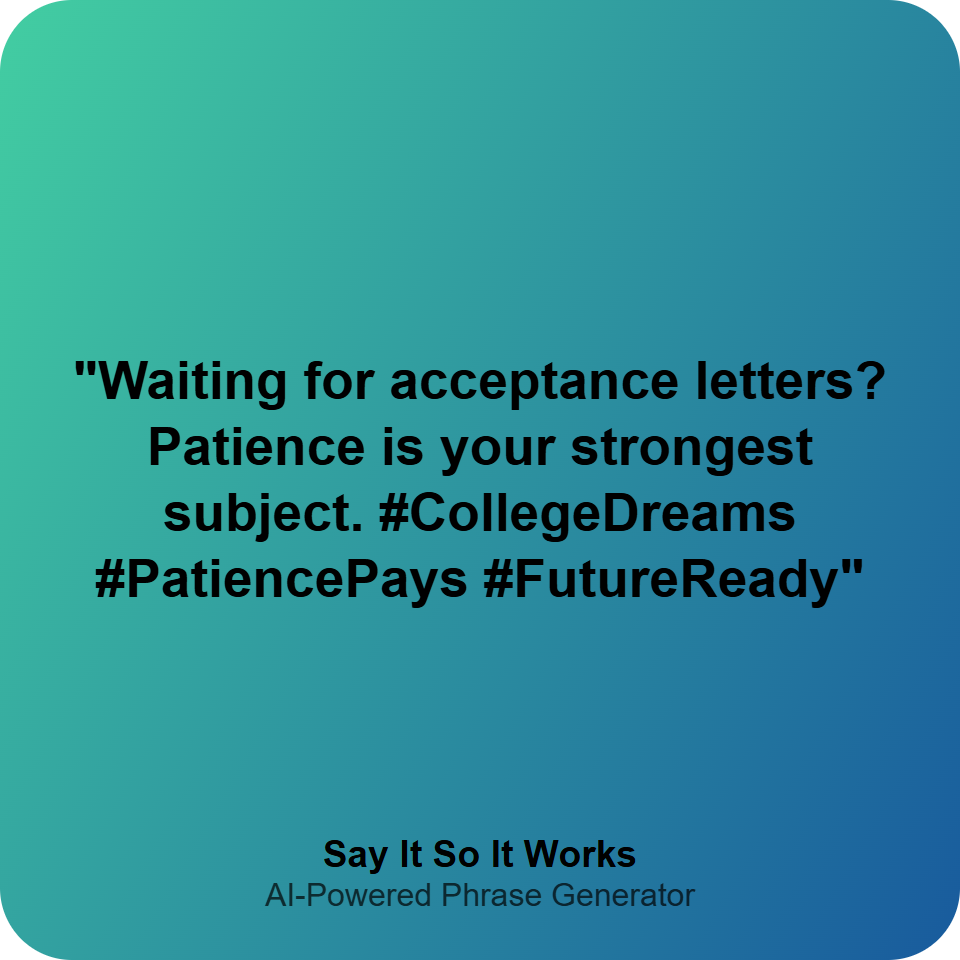 "Waiting for acceptance letters? Patience is your strongest subject. #CollegeDreams #PatiencePays #FutureReady"