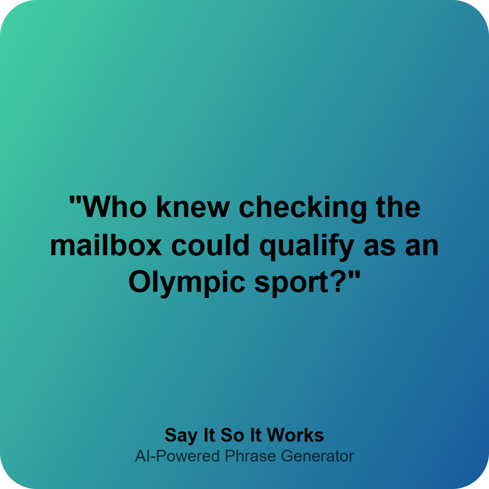 "Who knew checking the mailbox could qualify as an Olympic sport?"