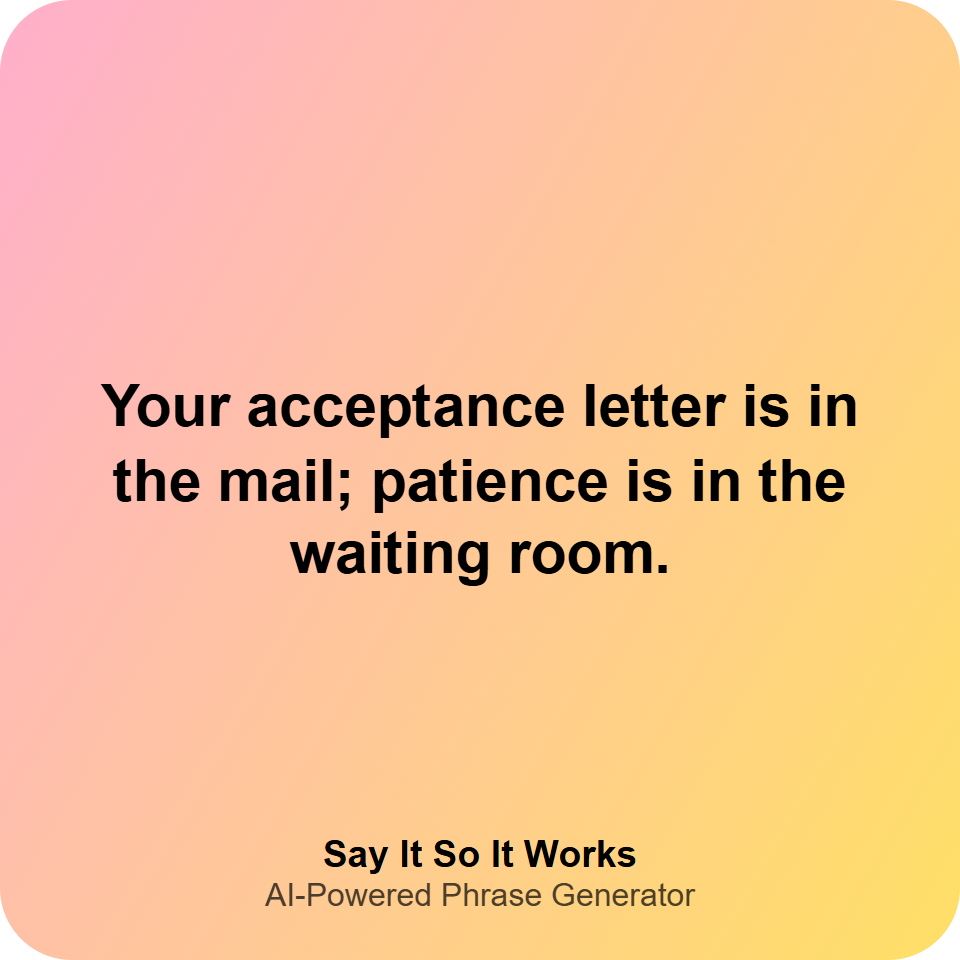 Your acceptance letter is in the mail; patience is in the waiting room.