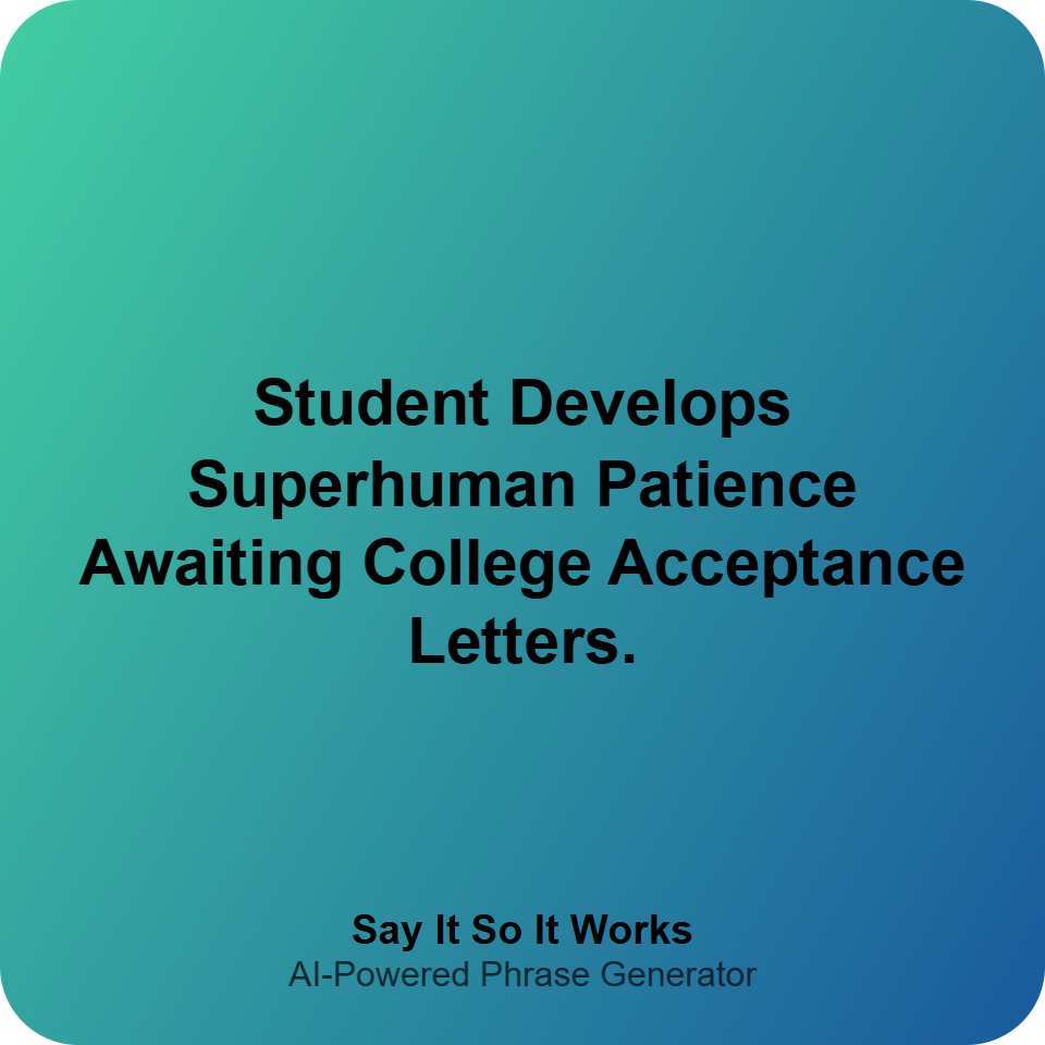 Student Develops Superhuman Patience Awaiting College Acceptance Letters.
