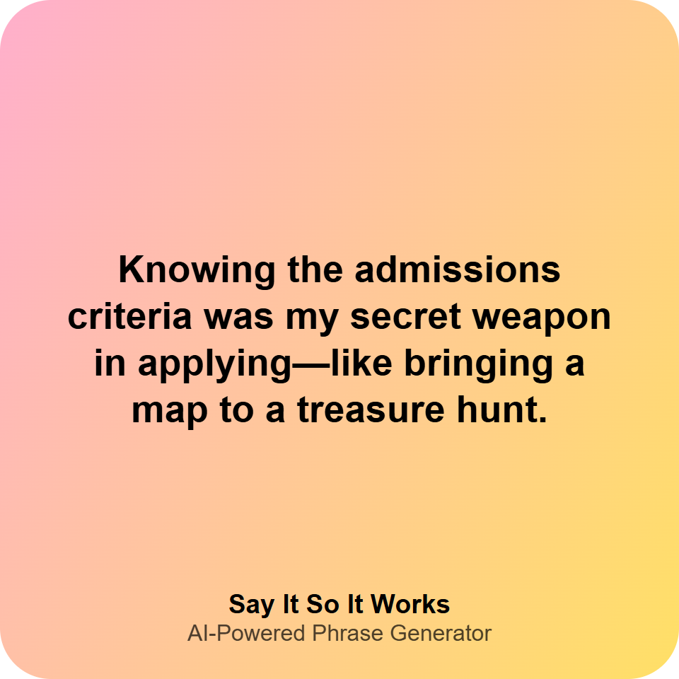 Knowing the admissions criteria was my secret weapon in applying—like bringing a map to a treasure hunt.