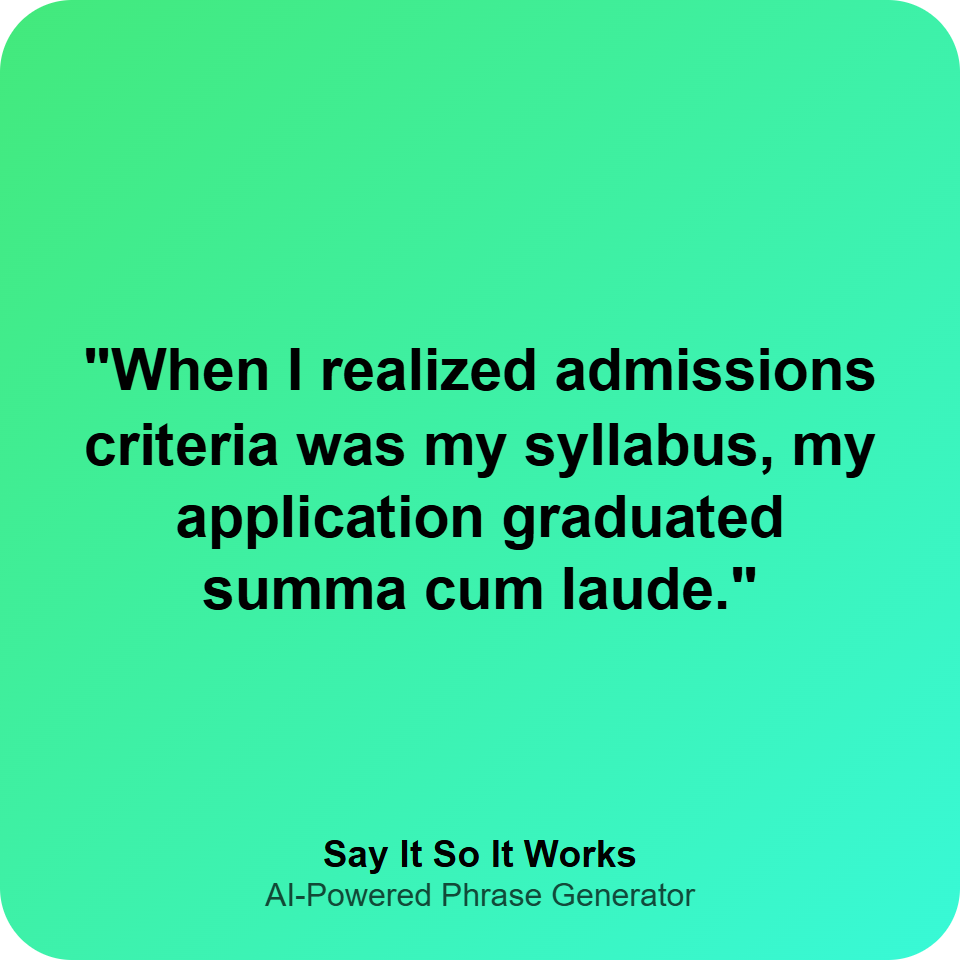 "When I realized admissions criteria was my syllabus, my application graduated summa cum laude."
