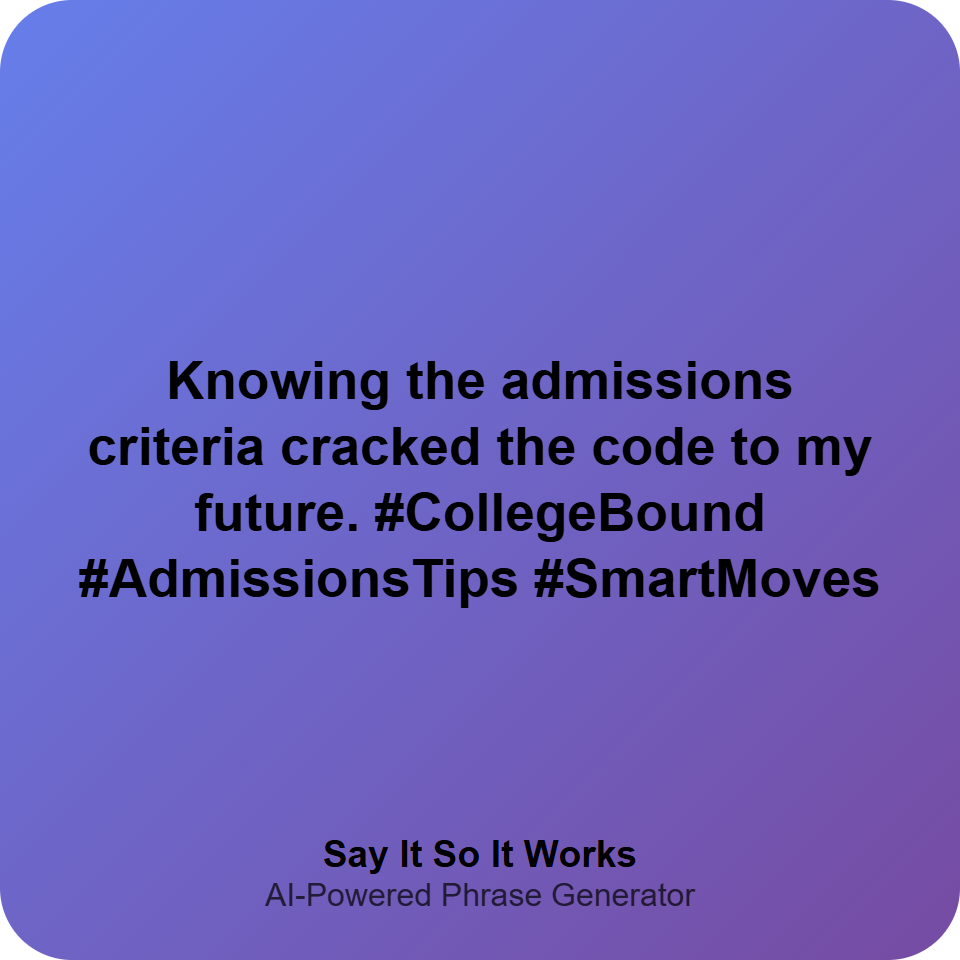 Knowing the admissions criteria cracked the code to my future. #CollegeBound #AdmissionsTips #SmartMoves