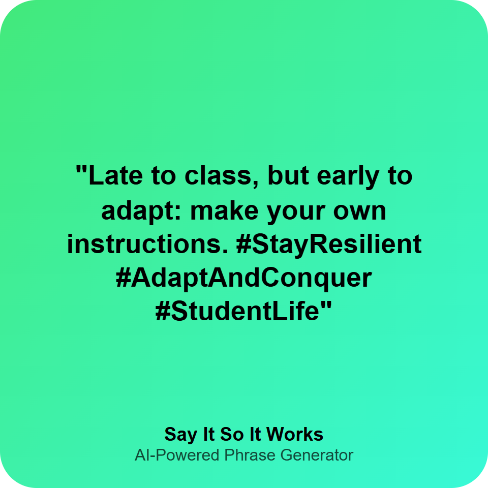 "Late to class, but early to adapt: make your own instructions. #StayResilient #AdaptAndConquer #StudentLife"