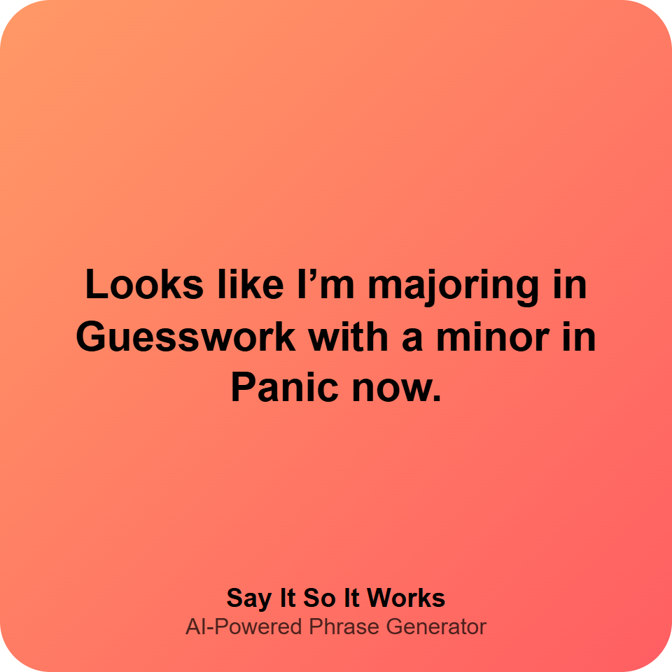 Looks like I’m majoring in Guesswork with a minor in Panic now.