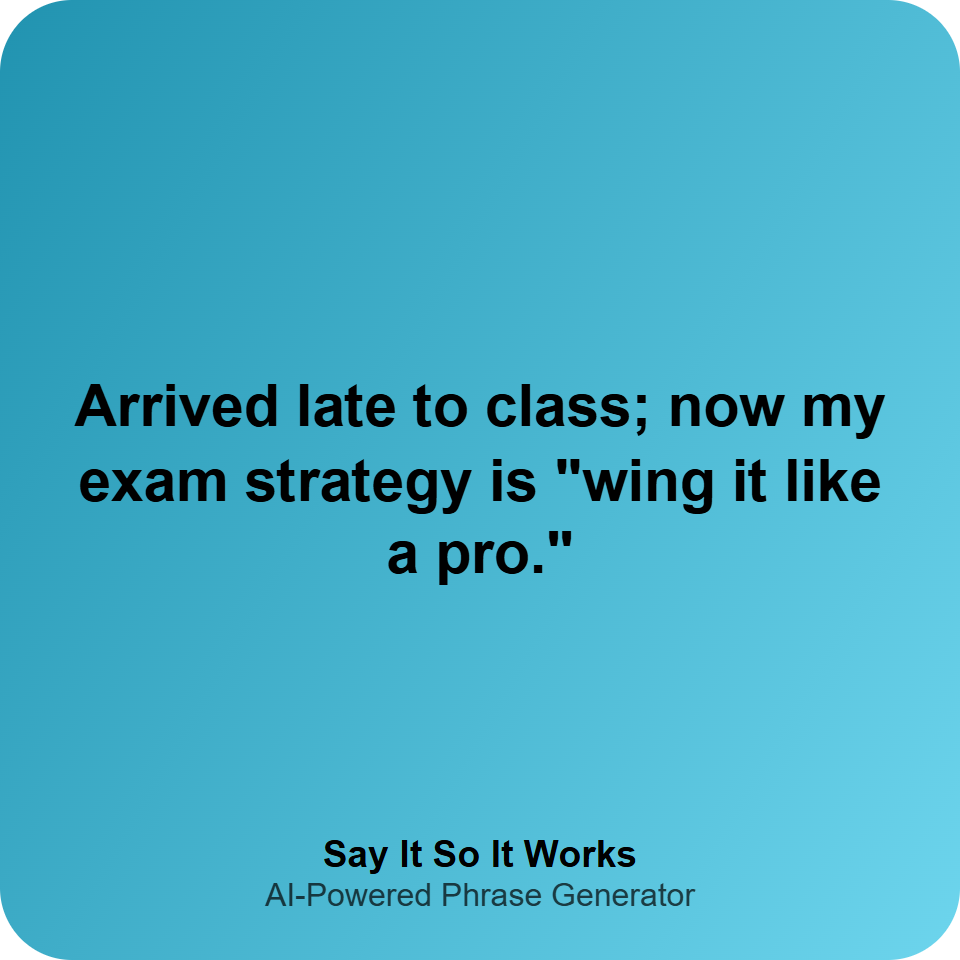 Arrived late to class; now my exam strategy is "wing it like a pro."