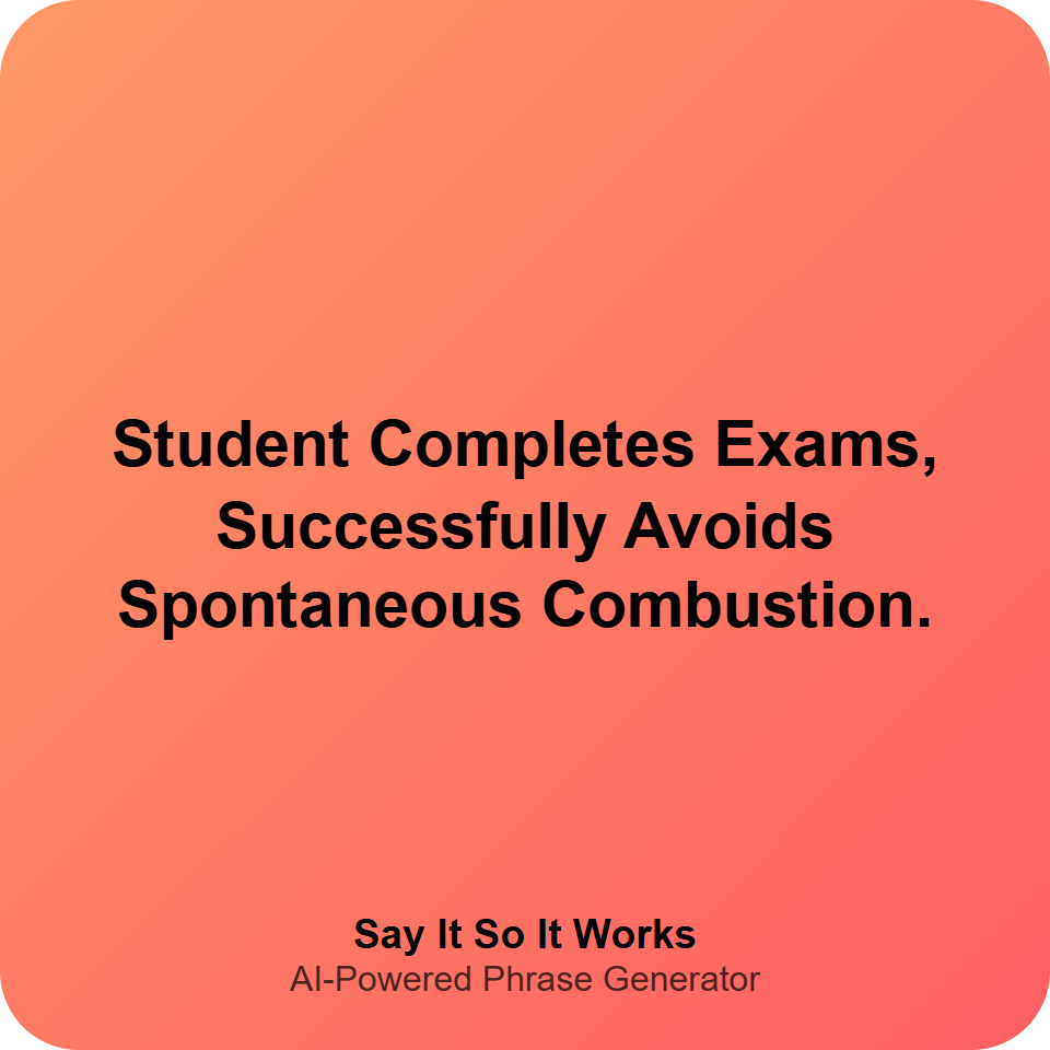 Student Completes Exams, Successfully Avoids Spontaneous Combustion.