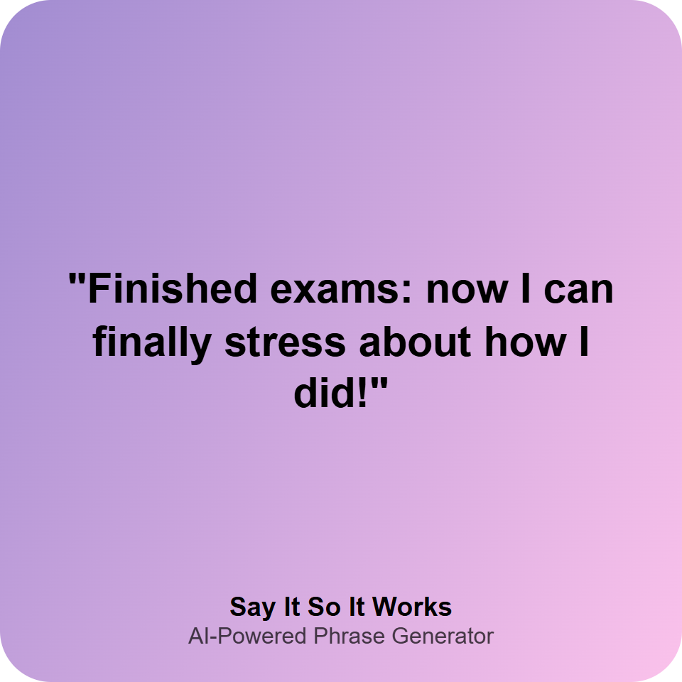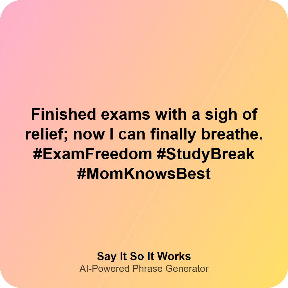 Finished exams with a sigh of relief; now I can finally breathe. #ExamFreedom #StudyBreak #MomKnowsBest