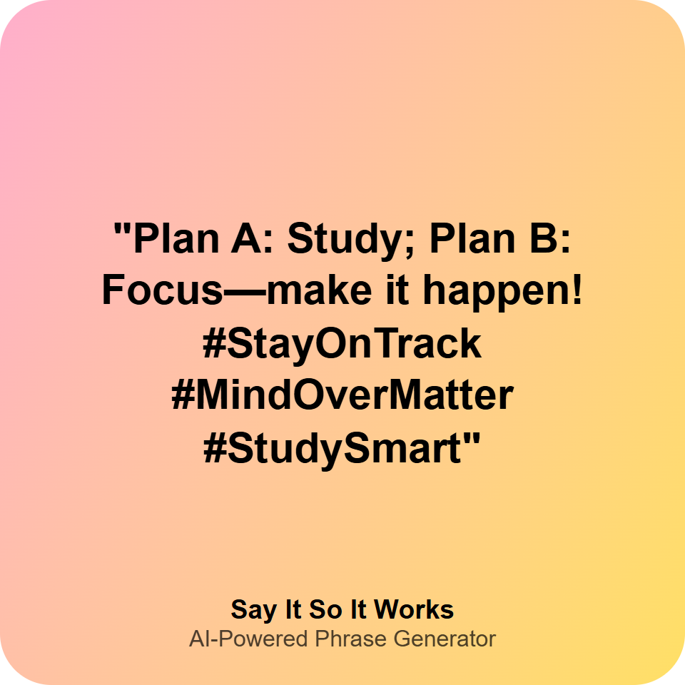 "Plan A: Study; Plan B: Focus—make it happen! #StayOnTrack #MindOverMatter #StudySmart"