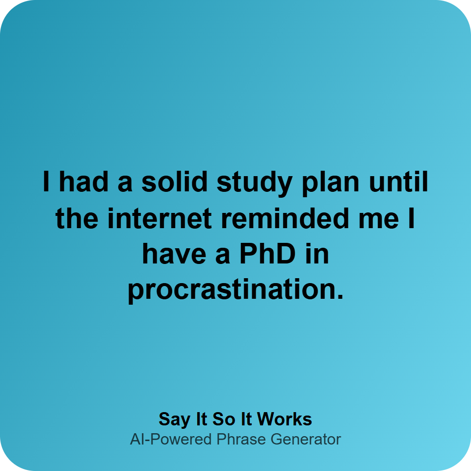 I had a solid study plan until the internet reminded me I have a PhD in procrastination.