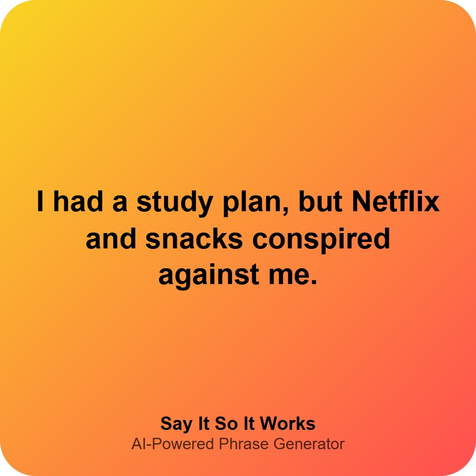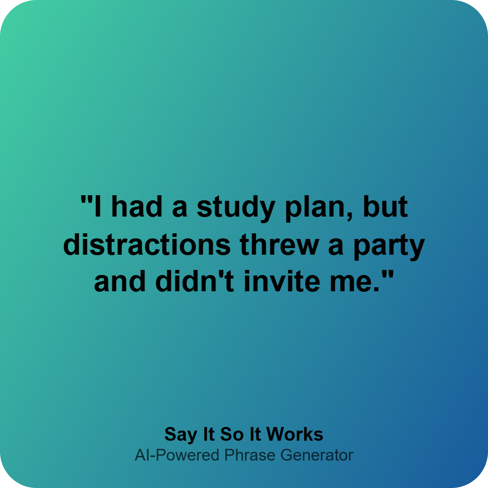 "I had a study plan, but distractions threw a party and didn't invite me."