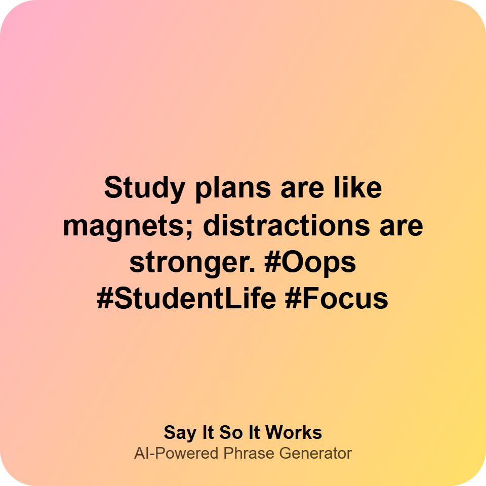 Study plans are like magnets; distractions are stronger. #Oops #StudentLife #Focus
