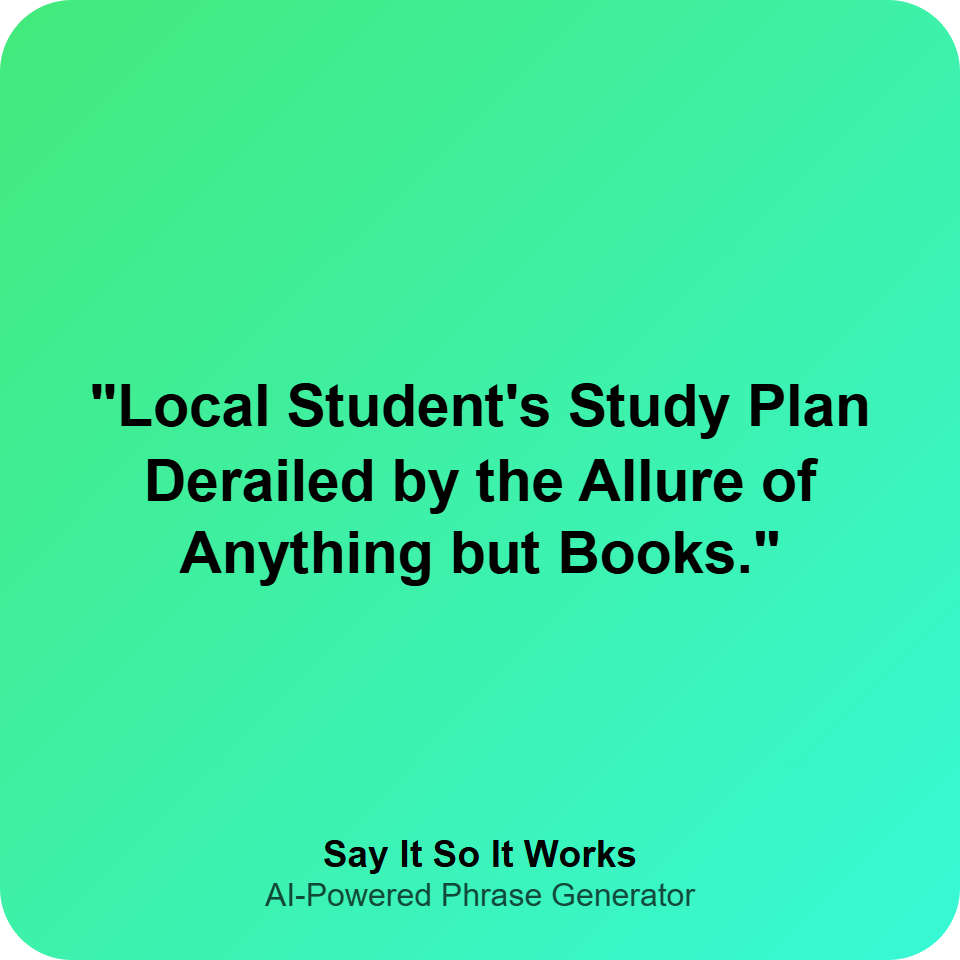 "Local Student's Study Plan Derailed by the Allure of Anything but Books."