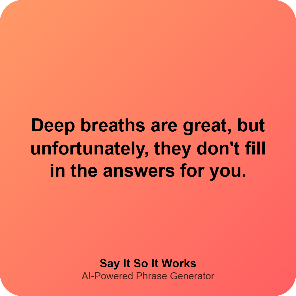 Deep breaths are great, but unfortunately, they don't fill in the answers for you.