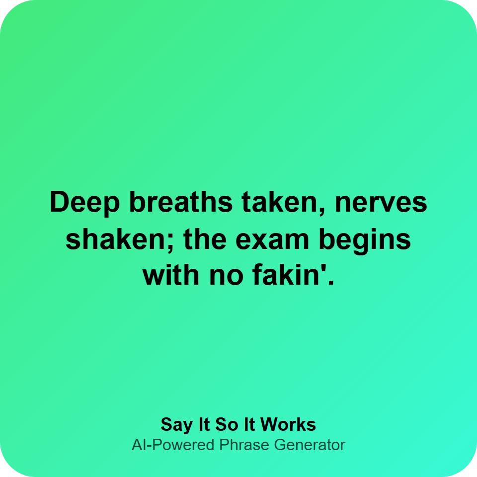 Deep breaths taken, nerves shaken; the exam begins with no fakin'.