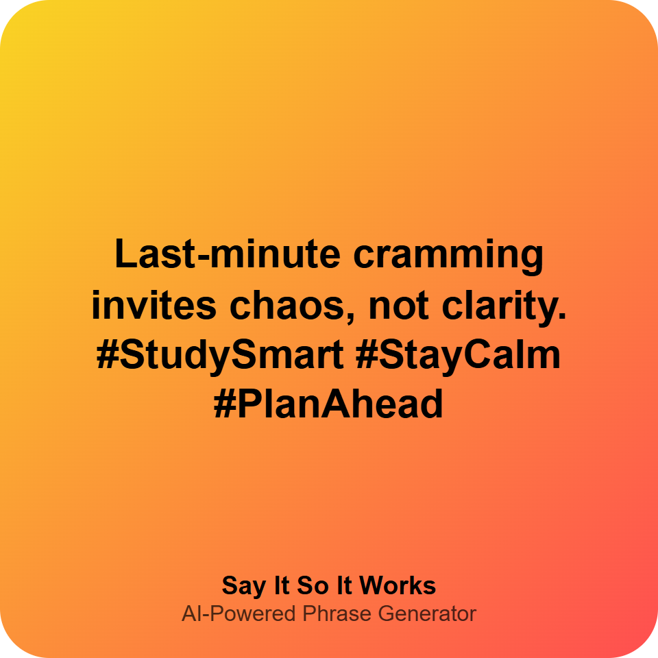 Last-minute cramming invites chaos, not clarity. #StudySmart #StayCalm #PlanAhead