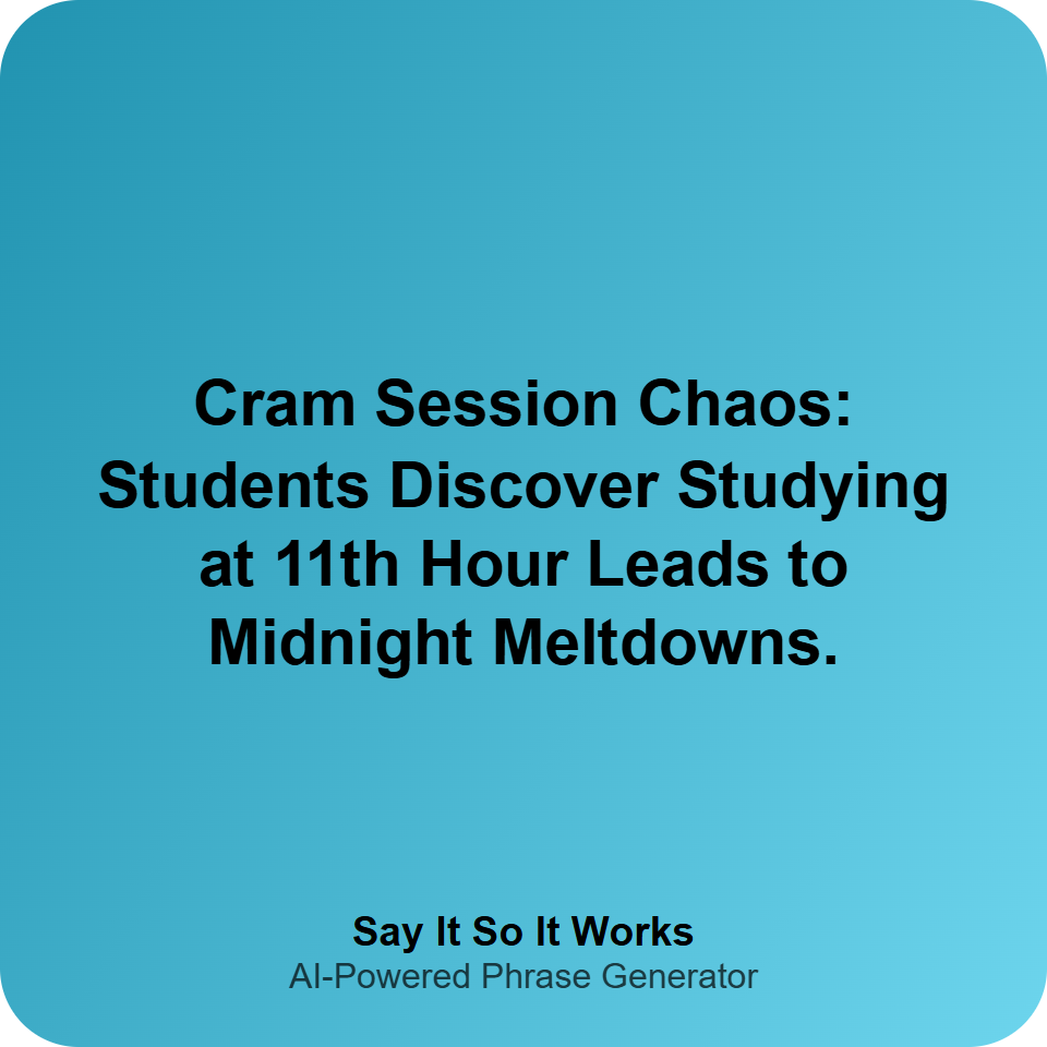 Cram Session Chaos: Students Discover Studying at 11th Hour Leads to Midnight Meltdowns.