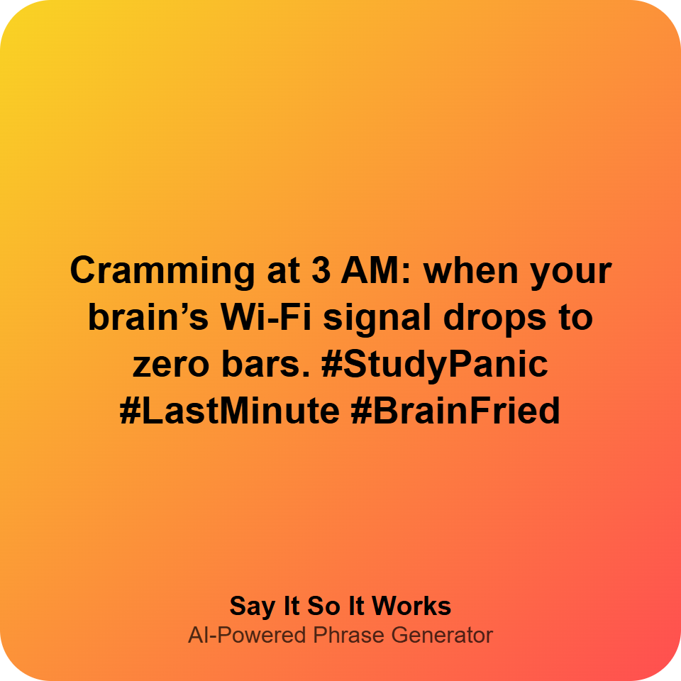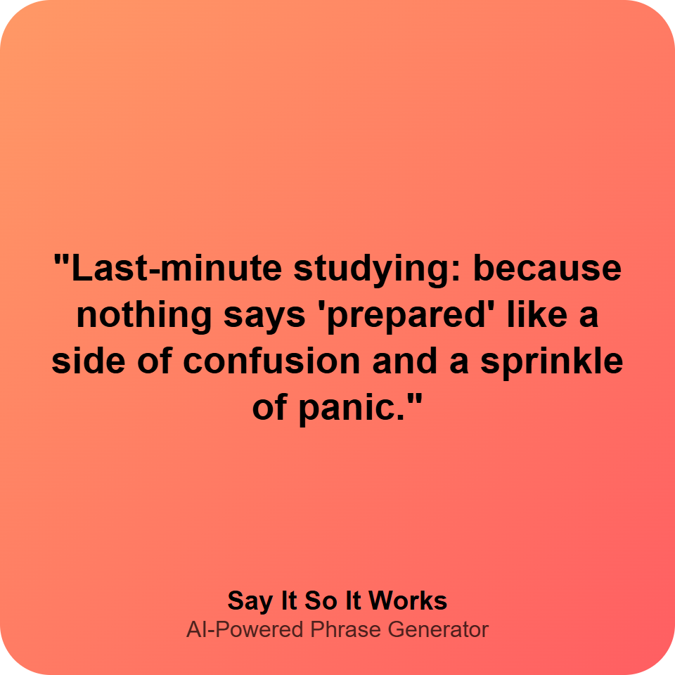 "Last-minute studying: because nothing says 'prepared' like a side of confusion and a sprinkle of panic."
