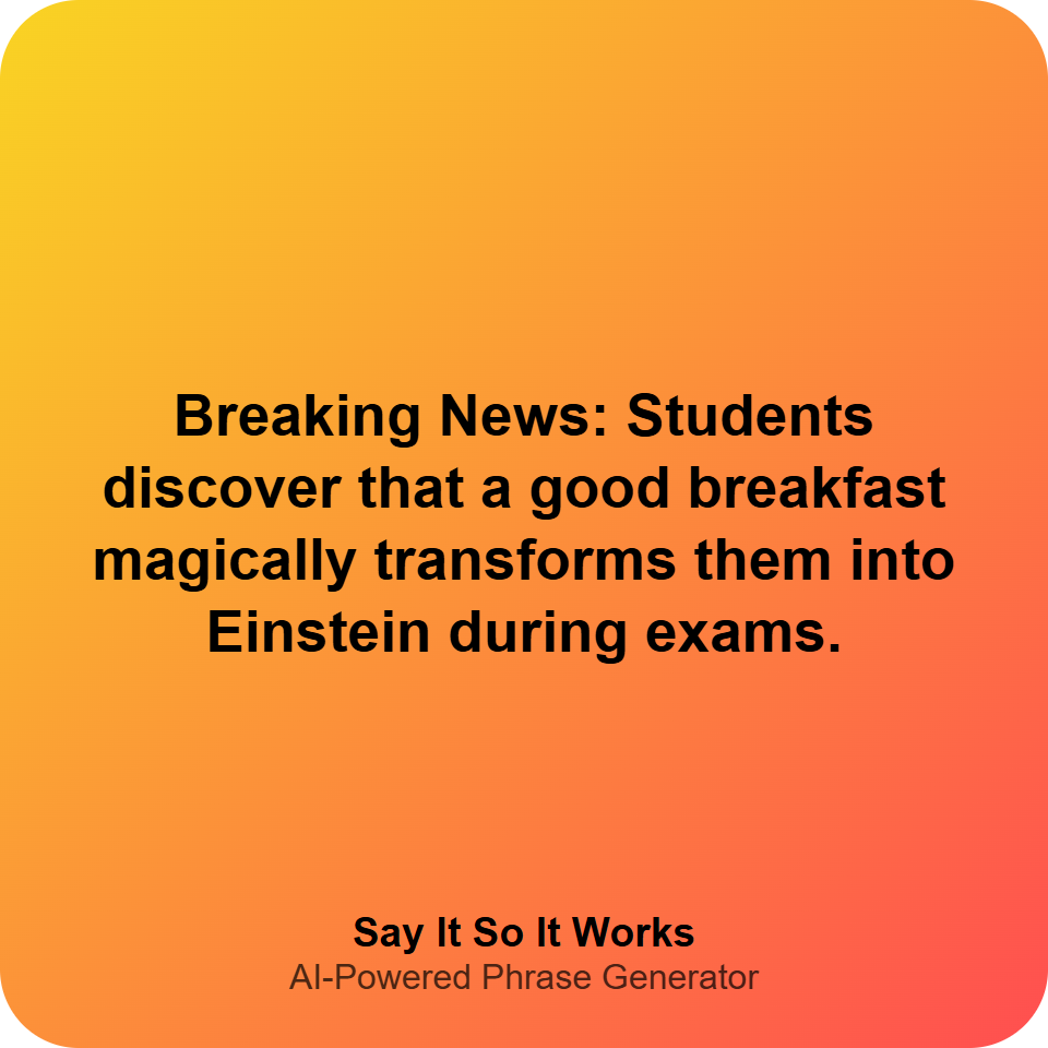 Breaking News: Students discover that a good breakfast magically transforms them into Einstein during exams.