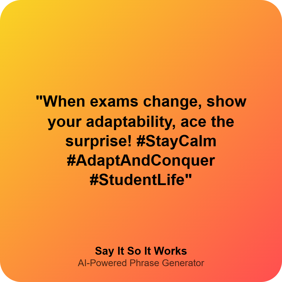 "When exams change, show your adaptability, ace the surprise! #StayCalm #AdaptAndConquer #StudentLife"