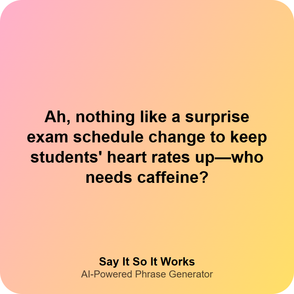 Ah, nothing like a surprise exam schedule change to keep students' heart rates up—who needs caffeine?