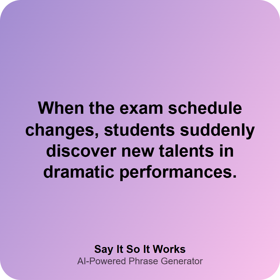 When the exam schedule changes, students suddenly discover new talents in dramatic performances.