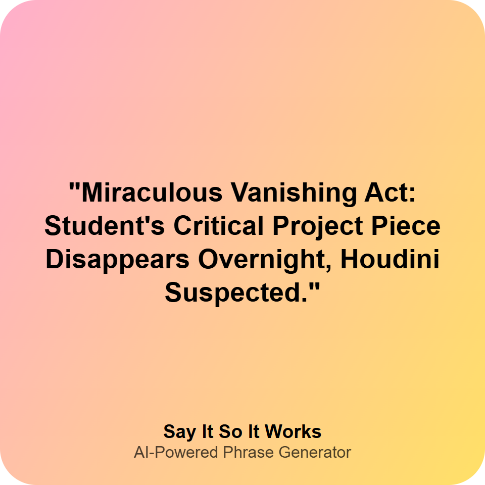 "Miraculous Vanishing Act: Student's Critical Project Piece Disappears Overnight, Houdini Suspected."
