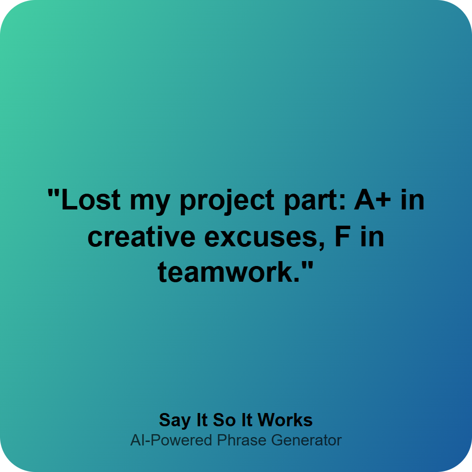 "Lost my project part: A+ in creative excuses, F in teamwork."