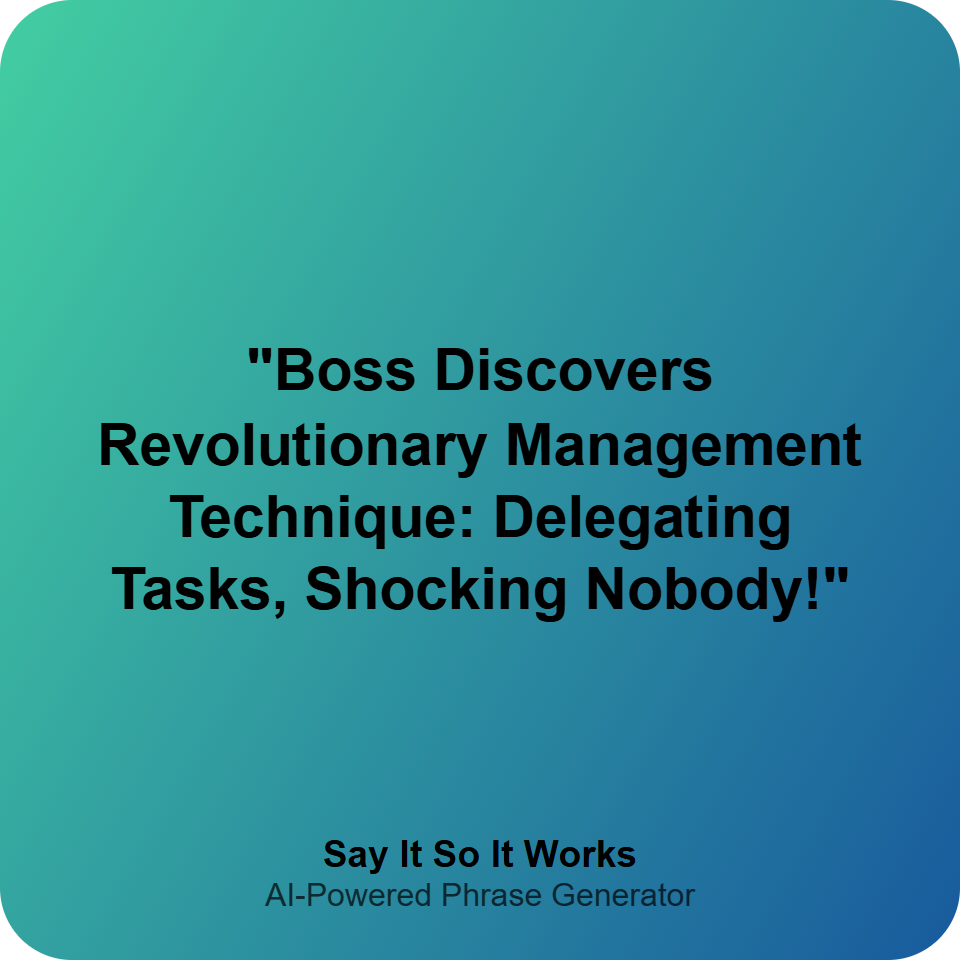 "Boss Discovers Revolutionary Management Technique: Delegating Tasks, Shocking Nobody!"